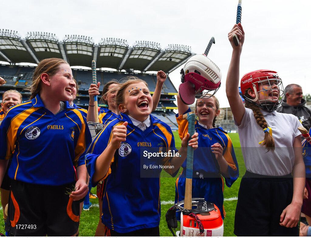 11 June 2019; Players from Our Ladys GNS, Ballinteer, Dublin celebrate after winning the Corn INTO final during the Allianz Cumann na mBunscol Finals 2019 Croke Park in Dublin. Photo by Eóin Noonan/Sportsfile