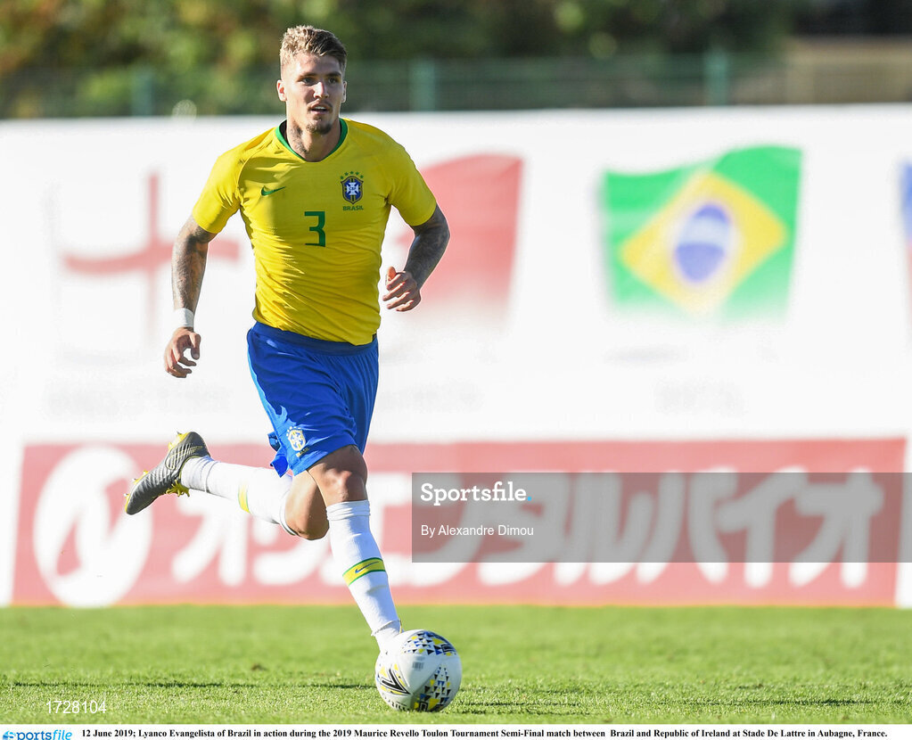 12 June 2019; Lyanco Evangelista of Brazil in action during the 2019 Maurice Revello Toulon Tournament Semi-Final match between Brazil and Republic of Ireland at Stade De Lattre in Aubagne, France. Photo by Alexandre Dimou