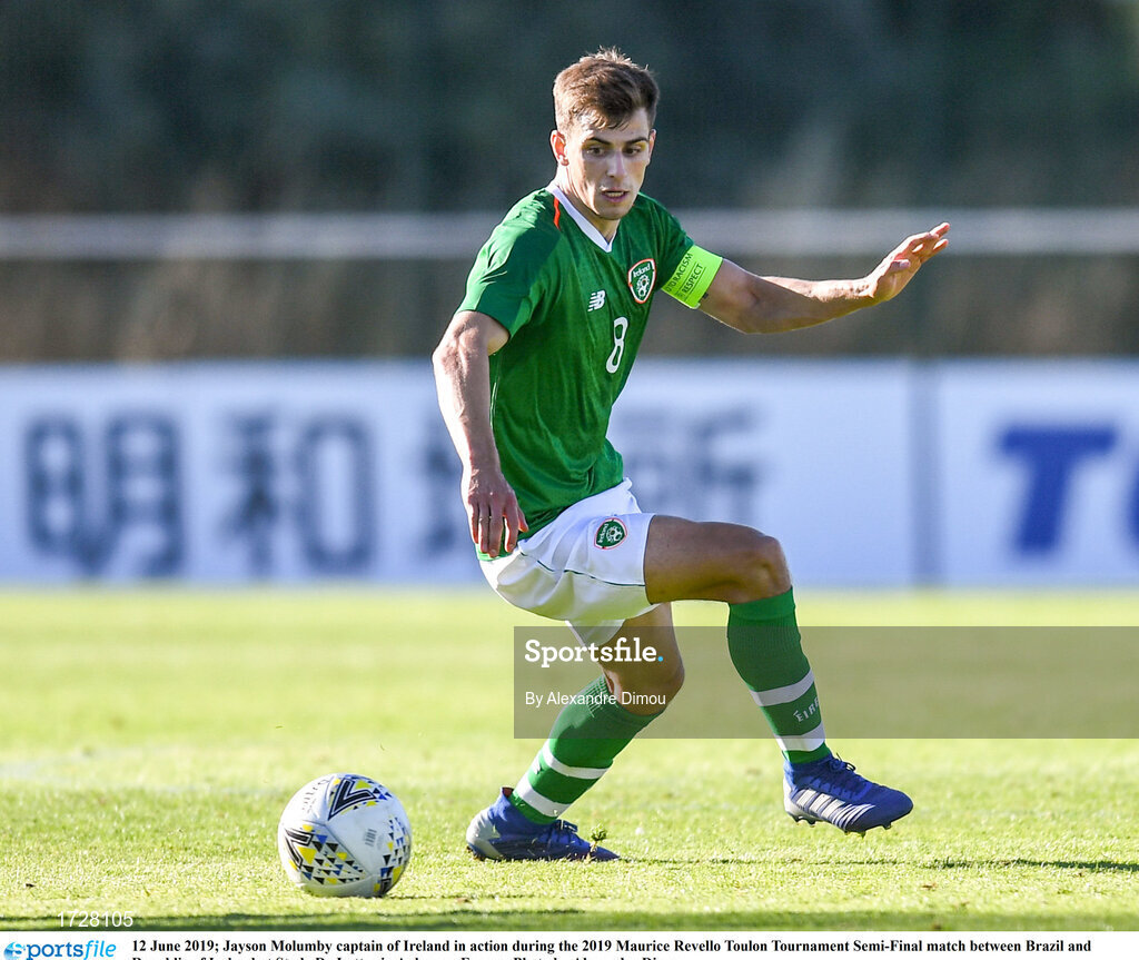 12 June 2019; Jayson Molumby captain of Ireland in action during the 2019 Maurice Revello Toulon Tournament Semi-Final match between Brazil and Republic of Ireland at Stade De Lattre in Aubagne, France. Photo by Alexandre Dimou
