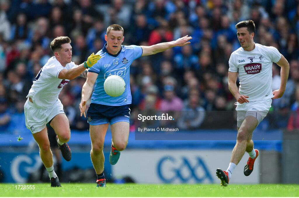 9 June 2019; Con O'Callaghan of Dublin in action against David Slattery, left, and Mick O'Grady of Kildare during the Leinster GAA Football Senior Championship Semi-Final match between Dublin and Kildare at Croke Park in Dublin. Photo by Piaras Ó Mídheach/Sportsfile
