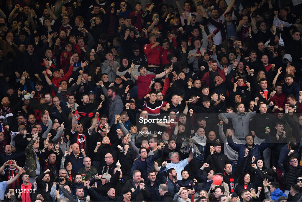14 June 2019; Bohemians supporters celebrate following their side's first goal during the SSE Airtricity League Premier Division match between Bohemians and Shamrock Rovers at Dalymount Park in Dublin. Photo by Seb Daly/Sportsfile