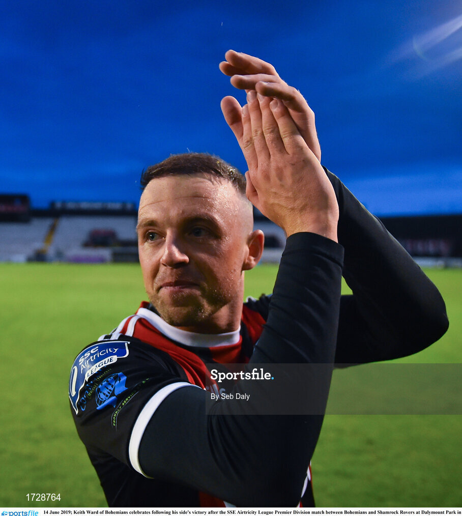 14 June 2019; Keith Ward of Bohemians celebrates following his side's victory after the SSE Airtricity League Premier Division match between Bohemians and Shamrock Rovers at Dalymount Park in Dublin. Photo by Seb Daly/Sportsfile