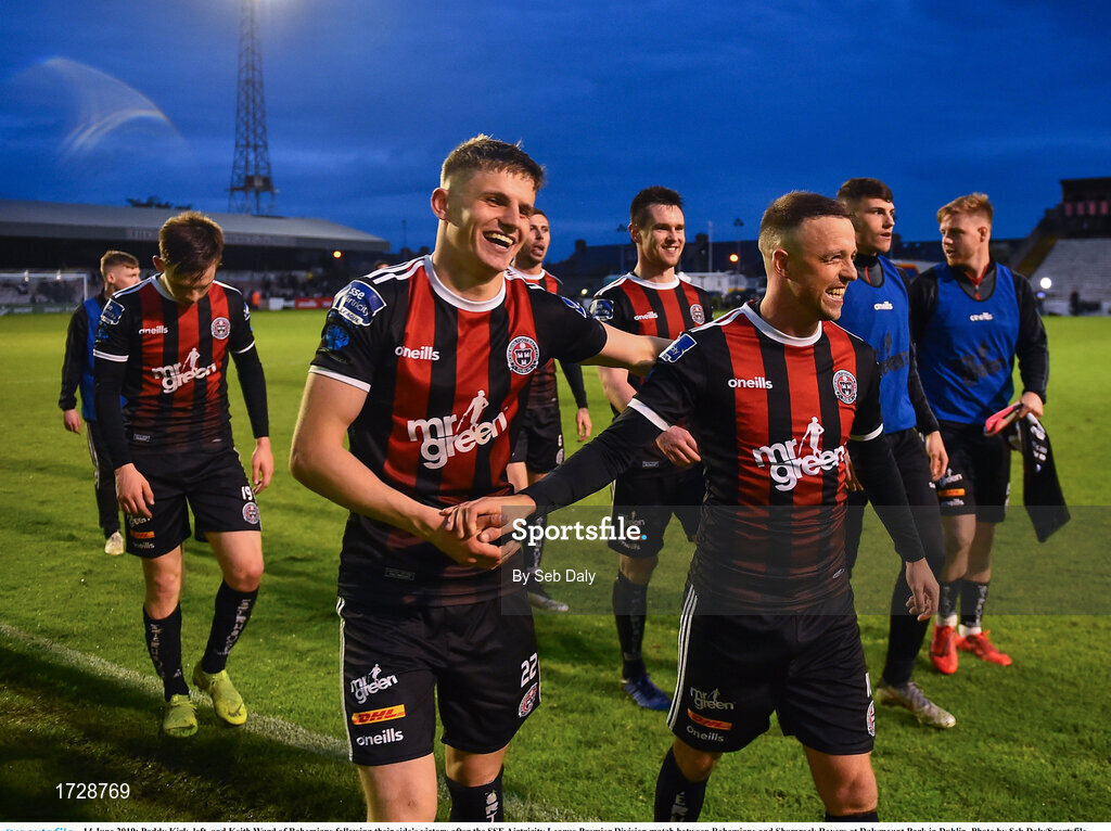14 June 2019; Paddy Kirk, left, and Keith Ward of Bohemians following their side's victory after the SSE Airtricity League Premier Division match between Bohemians and Shamrock Rovers at Dalymount Park in Dublin. Photo by Seb Daly/Sportsfile