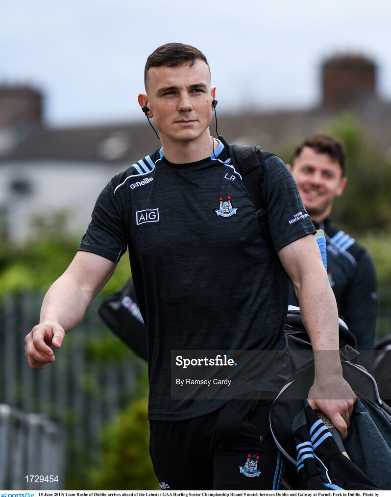 15 June 2019; Liam Rushe of Dublin arrives ahead of the Leinster GAA Hurling Senior Championship Round 5 match between Dublin and Galway at Parnell Park in Dublin. Photo by Ramsey Cardy/Sportsfile