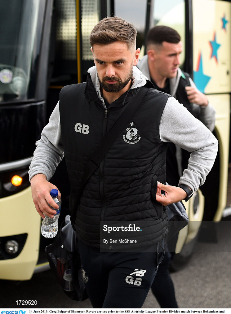 14 June 2019; Greg Bolger of Shamrock Rovers arrives prior to the SSE Airtricity League Premier Division match between Bohemians and Shamrock Rovers at Dalymount Park in Dublin. Photo by Ben McShane/Sportsfile