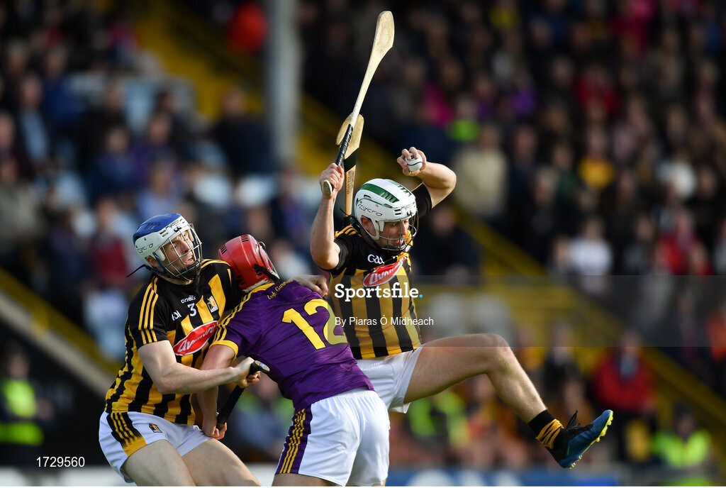 15 June 2019; Pádraig Walsh of Kilkenny gathers possession ahead of team-mate Huw Lawlor and Paul Morris of Wexford during the Leinster GAA Hurling Senior Championship Round 5 match between Wexford and Kilkenny at Innovate Wexford Park in Wexford. Photo by Piaras Ó Mídheach/Sportsfile