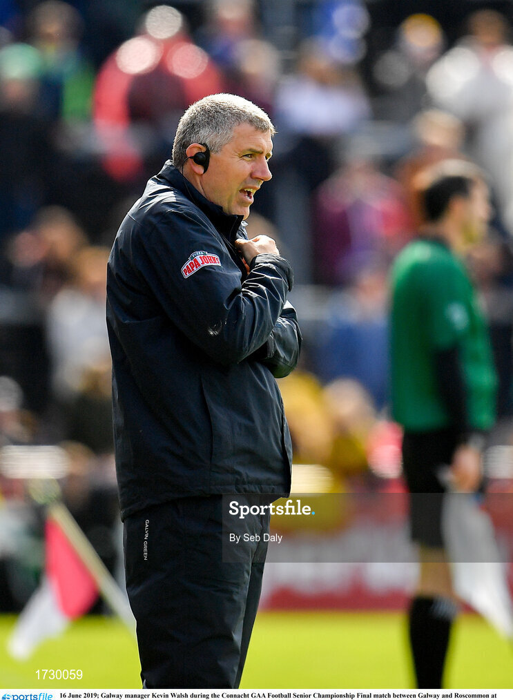 16 June 2019; Galway manager Kevin Walsh during the Connacht GAA Football Senior Championship Final match between Galway and Roscommon at Pearse Stadium in Galway. Photo by Seb Daly/Sportsfile