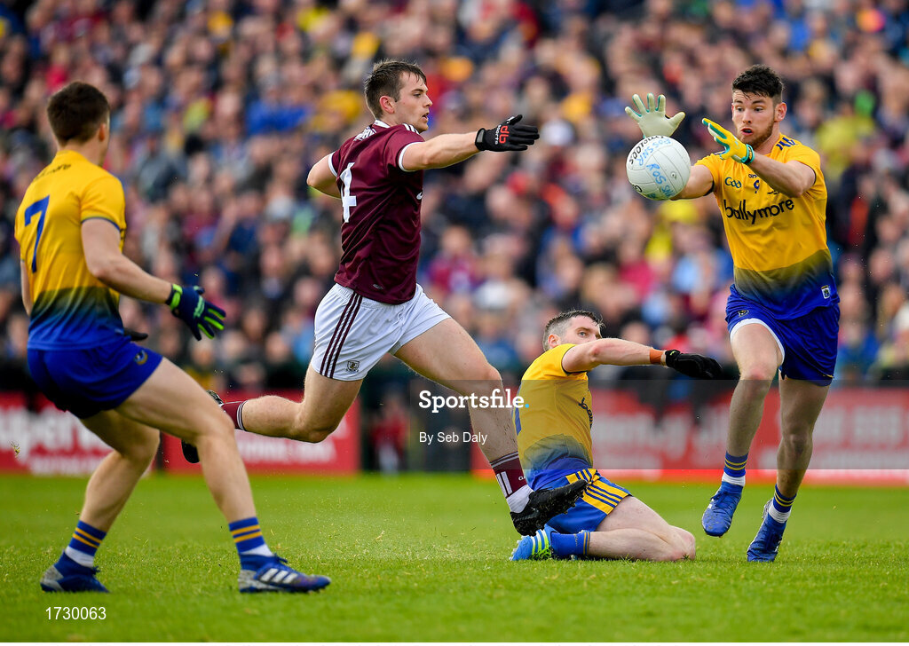 16 June 2019; Shane Killoran of Roscommon in action against Liam Silke of Galway during the Connacht GAA Football Senior Championship Final match between Galway and Roscommon at Pearse Stadium in Galway. Photo by Seb Daly/Sportsfile