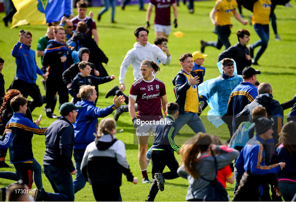 16 June 2019; Kieran Molloy of Galway at the final whistle as Roscommon supporters rush past him during the Connacht GAA Football Senior Championship Final match between Galway and Roscommon at Pearse Stadium in Galway. Photo by Seb Daly/Sportsfile