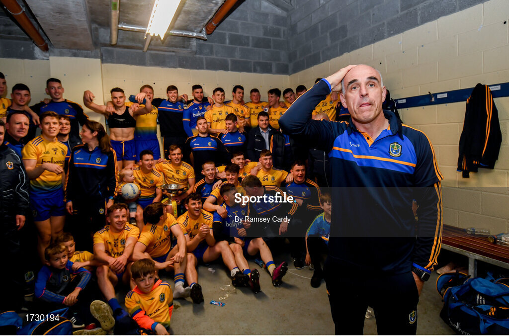 16 June 2019; Roscommon manager Anthony Cunningham and his team in the dressing room following the Connacht GAA Football Senior Championship Final match between Galway and Roscommon at Pearse Stadium in Galway. Photo by Ramsey Cardy/Sportsfile