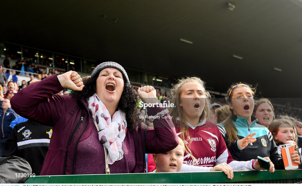 16 June 2019; Galway supporters during the Connacht GAA Football Senior Championship Final match between Galway and Roscommon at Pearse Stadium in Galway. Photo by Ramsey Cardy/Sportsfile