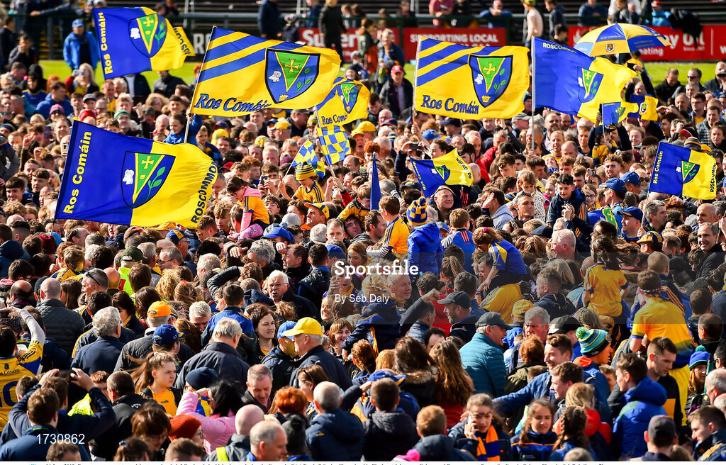 16 June 2019; Roscommon supporters celebrate on the pitch following their side's victory during the Connacht GAA Football Senior Championship Final match between Galway and Roscommon at Pearse Stadium in Galway. Photo by Seb Daly/Sportsfile
