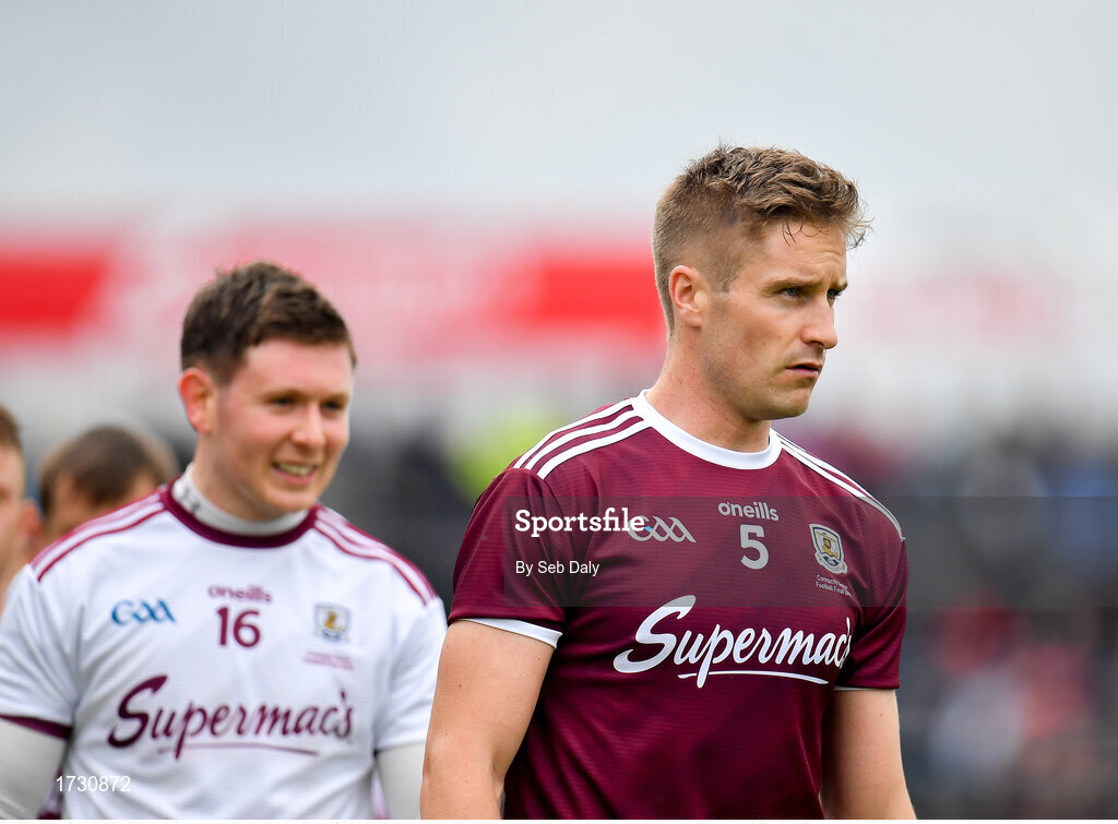 16 June 2019; Gary O’Donnell of Galway leads his side during the parade prior to the Connacht GAA Football Senior Championship Final match between Galway and Roscommon at Pearse Stadium in Galway. Photo by Seb Daly/Sportsfile