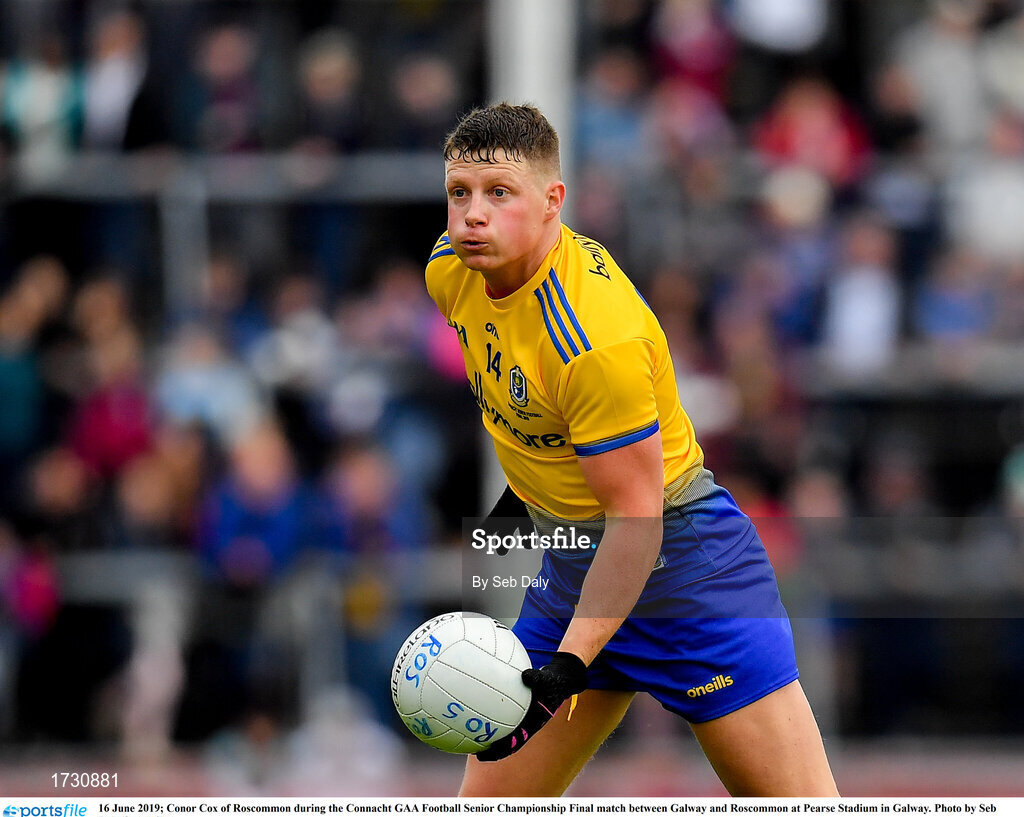 16 June 2019; Conor Cox of Roscommon during the Connacht GAA Football Senior Championship Final match between Galway and Roscommon at Pearse Stadium in Galway. Photo by Seb Daly/Sportsfile