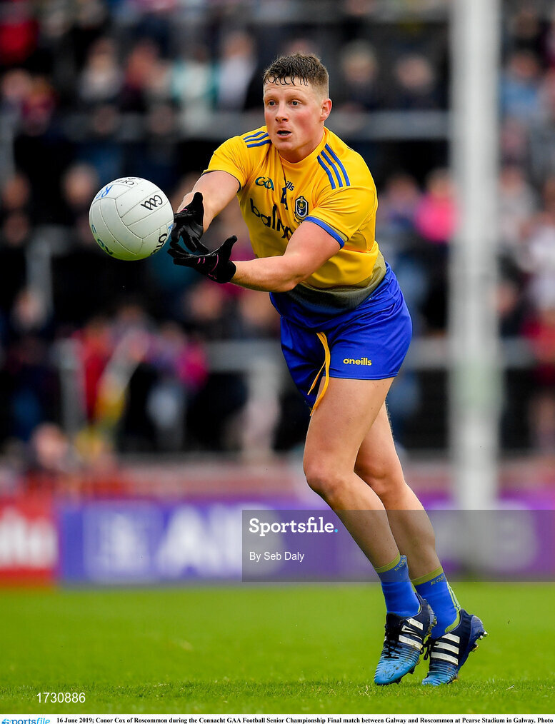 16 June 2019; Conor Cox of Roscommon during the Connacht GAA Football Senior Championship Final match between Galway and Roscommon at Pearse Stadium in Galway. Photo by Seb Daly/Sportsfile