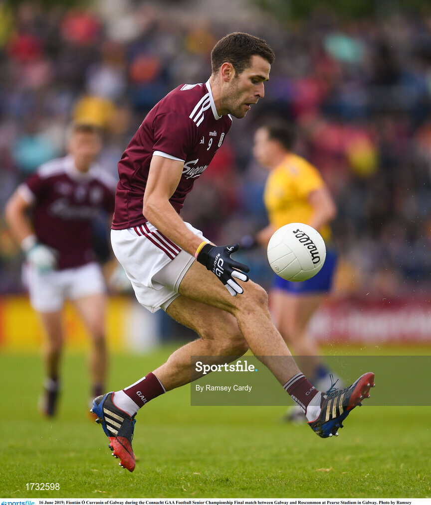 16 June 2019; Fiontán Ó Curraoin of Galway during the Connacht GAA Football Senior Championship Final match between Galway and Roscommon at Pearse Stadium in Galway. Photo by Ramsey Cardy/Sportsfile