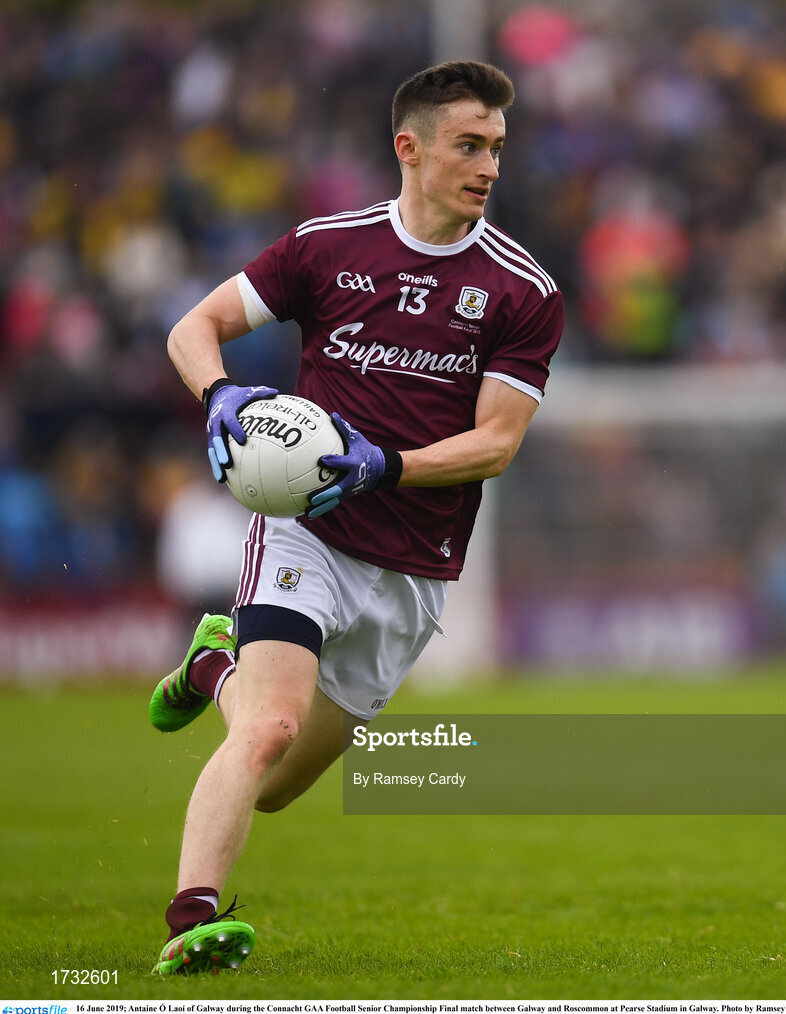 16 June 2019; Antaine Ó Laoí of Galway during the Connacht GAA Football Senior Championship Final match between Galway and Roscommon at Pearse Stadium in Galway. Photo by Ramsey Cardy/Sportsfile