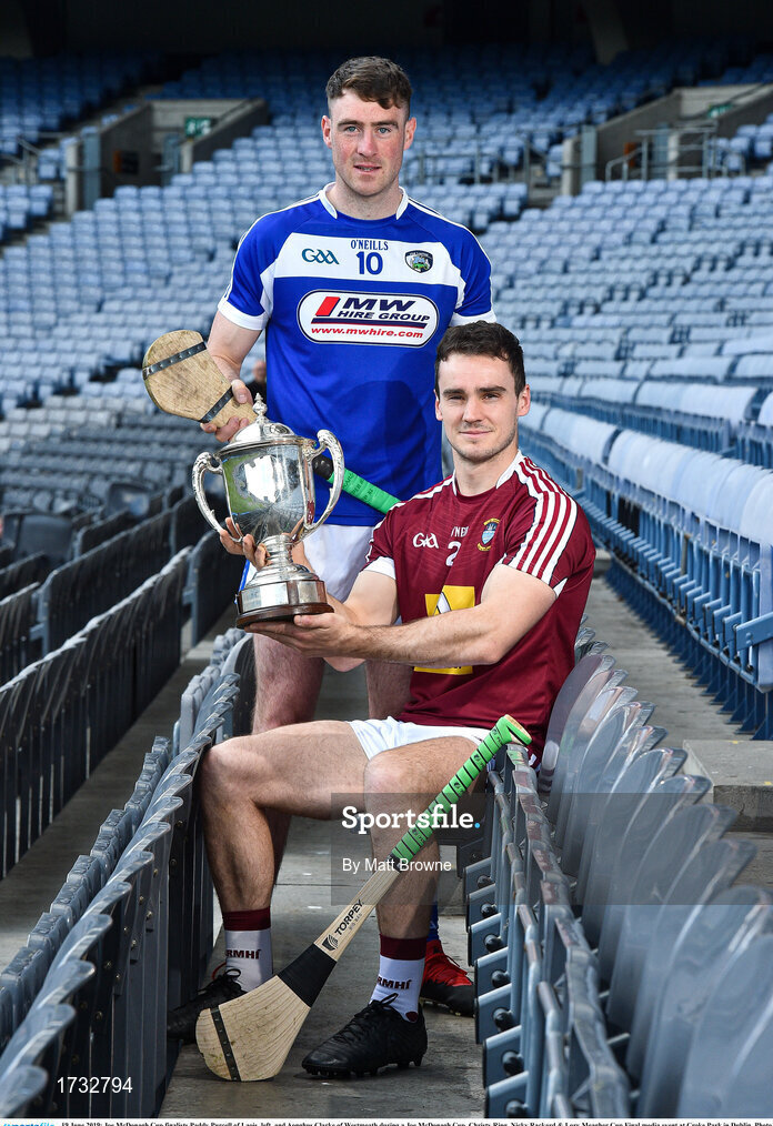 19 June 2019; Joe McDonagh Cup finalists Paddy Purcell of Laois, left, and Aonghus Clarke of Westmeath during a Joe McDonagh Cup, Christy Ring, Nicky Rackard & Lory Meagher Cup Final media event at Croke Park in Dublin. Photo by Matt Browne/Sportsfile