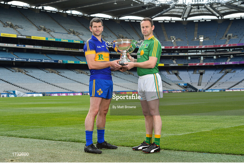 19 June 2019; Lory Meagher Cup finalists Edmond Kenny of Lancashire, left, and Declan Molloy of Leitrim during a Joe McDonagh Cup, Christy Ring, Nicky Rackard & Lory Meagher Cup Final media event at Croke Park in Dublin. Photo by Matt Browne/Sportsfile