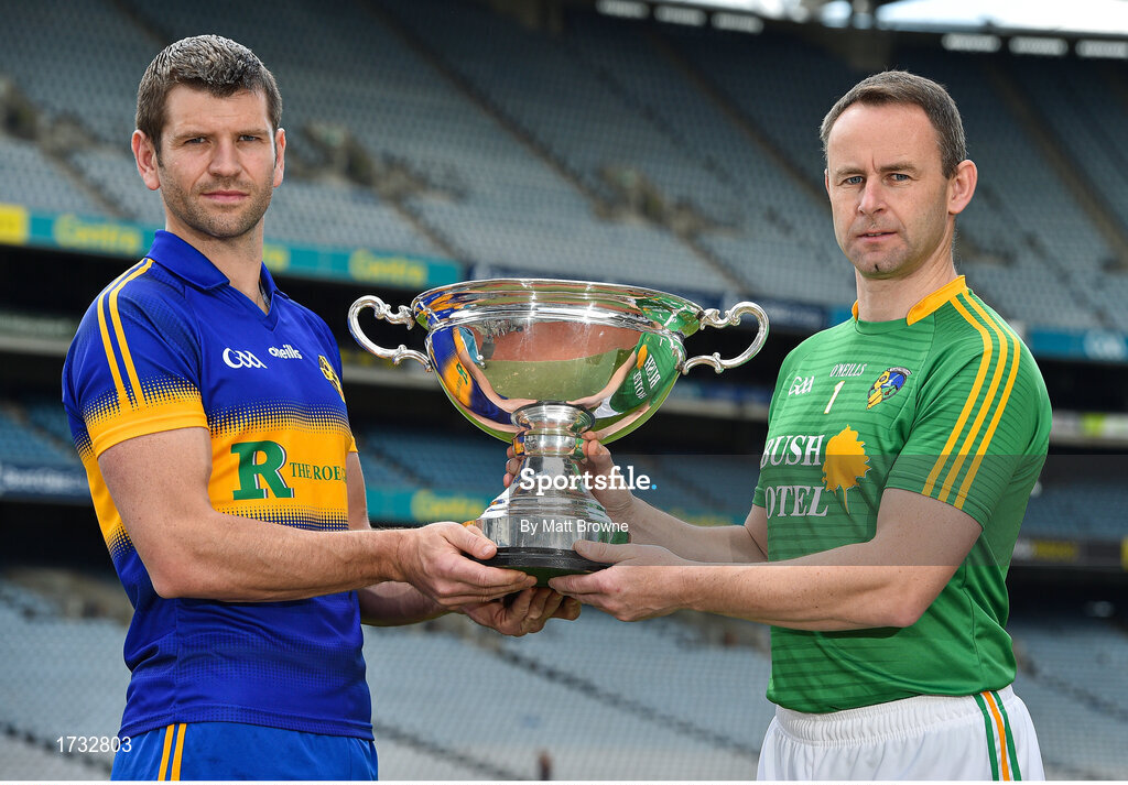 19 June 2019; Lory Meagher Cup finalists Edmond Kenny of Lancashire, left, and Declan Molloy of Leitrim during a Joe McDonagh Cup, Christy Ring, Nicky Rackard & Lory Meagher Cup Final media event at Croke Park in Dublin. Photo by Matt Browne/Sportsfile