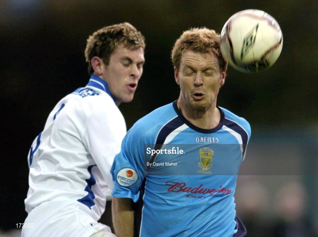 15 April 2005; Tony McDonnell, UCD, in action against Daryl Murphy, Waterford United. eircom League, Premier Division, UCD v Waterford United, Belfield Park, UCD, Dublin. Picture credit; David Maher / SPORTSFILE