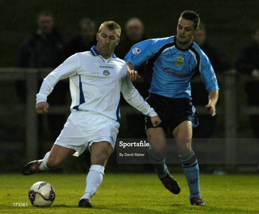 15 April 2005; Alan Reynolds, Waterford United, in action against Robbie Martin, UCD. eircom League, Premier Division, UCD v Waterford United, Belfield Park, UCD, Dublin. Picture credit; David Maher / SPORTSFILE