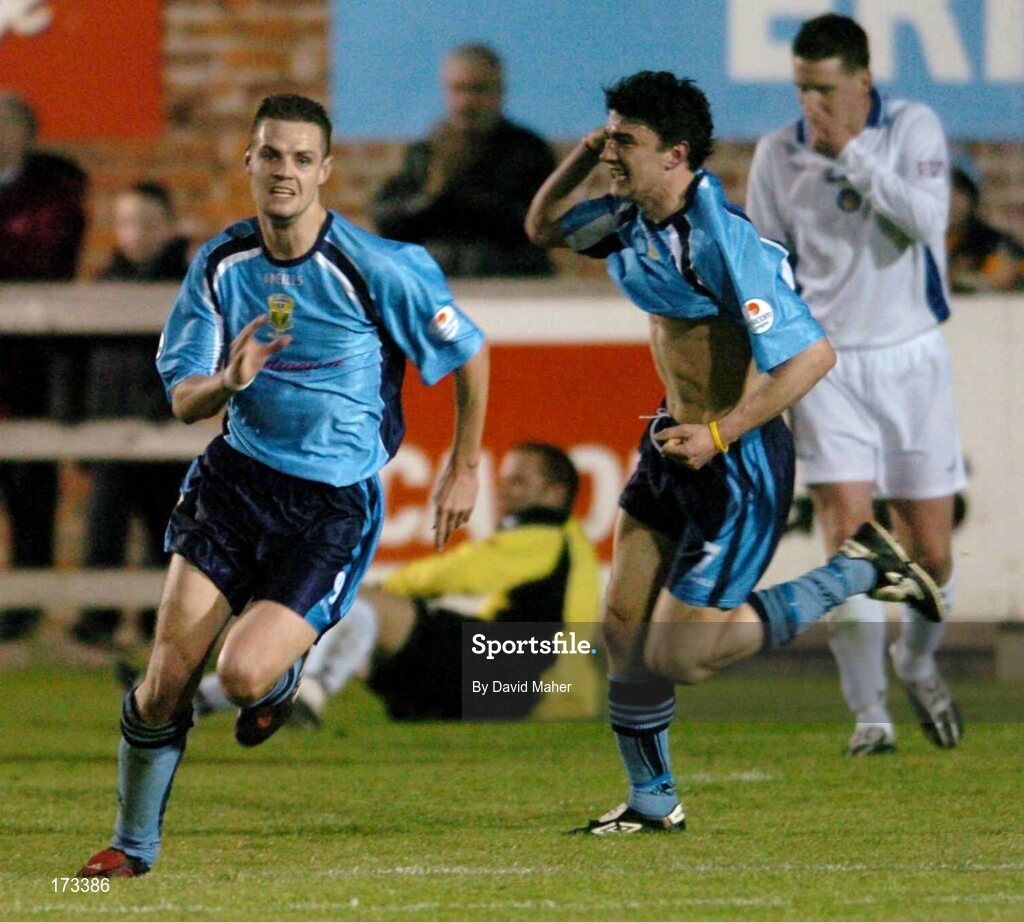 15 April 2005; Robbie Martin, left, UCD, turns to celebrate after scoring his sides first goal with team-mate Anto Murphy. eircom League, Premier Division, UCD v Waterford United, Belfield Park, UCD, Dublin. Picture credit; David Maher / SPORTSFILE