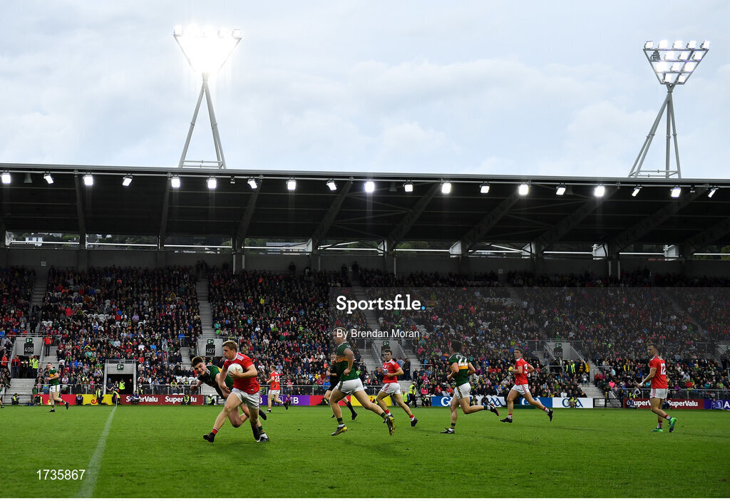 22 June 2019; Liam O’Donovan of Cork in action against Sean O'Shea of Kerry during the Munster GAA Football Senior Championship Final match between Cork and Kerry at Páirc Ui Chaoimh in Cork. Photo by Brendan Moran/Sportsfile