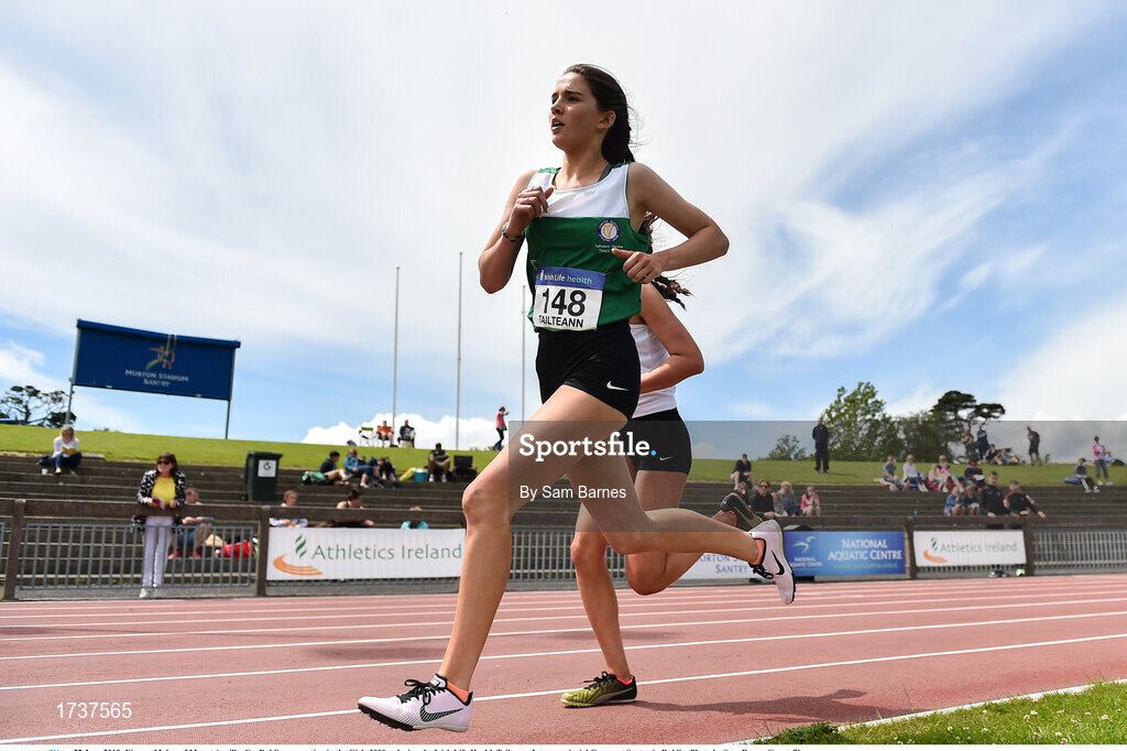 22 June 2019; Eimear Maher of Mount Anville, Co. Dublin, competing in the Girls 3000m during the Irish Life Health Tailteann Inter-provincial Games at Santry in Dublin. Photo by Sam Barnes/Sportsfile