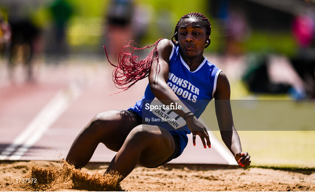 22 June 2019; Chisom Ugwueru of St. Flannan's College, Co. Clare, competing in the Girls Triple Jump event during the Irish Life Health Tailteann Inter-provincial Games at Santry in Dublin. Photo by Sam Barnes/Sportsfile
