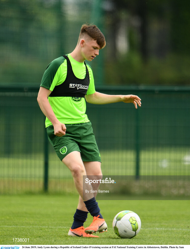 24 June 2019; Andy Lyons during a Republic of Ireland Under-19 training session at FAI National Training Centre in Abbotstown, Dublin. Photo by Sam Barnes/Sportsfile