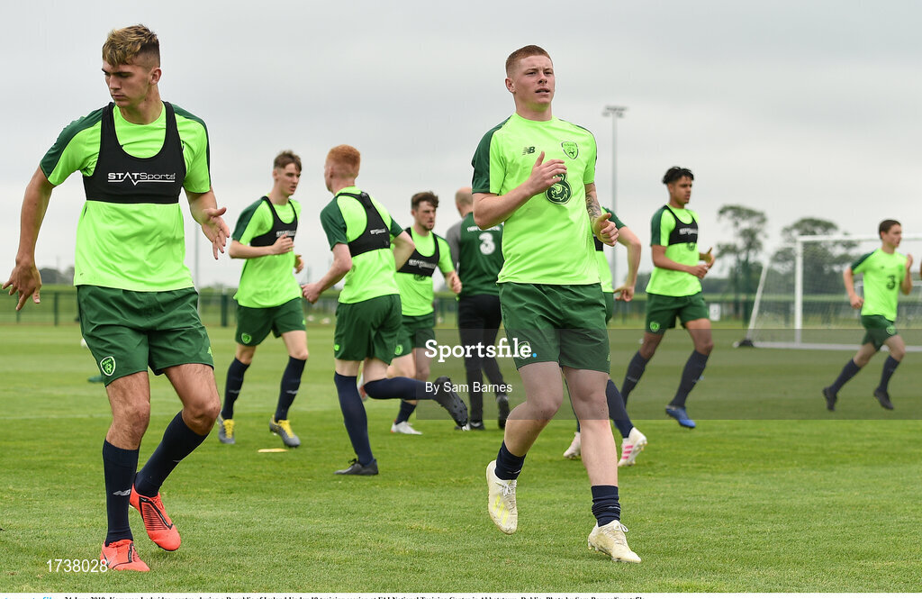 24 June 2019; Kameron Ledwidge, centre, during a Republic of Ireland Under-19 training session at FAI National Training Centre in Abbotstown, Dublin. Photo by Sam Barnes/Sportsfile