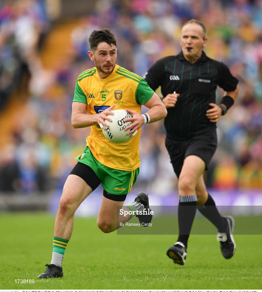 23 June 2019; Ryan McHugh of Donegal during the Ulster GAA Football Senior Championship Final match between Donegal and Cavan at St Tiernach's Park in Clones, Monaghan. Photo by Ramsey Cardy/Sportsfile