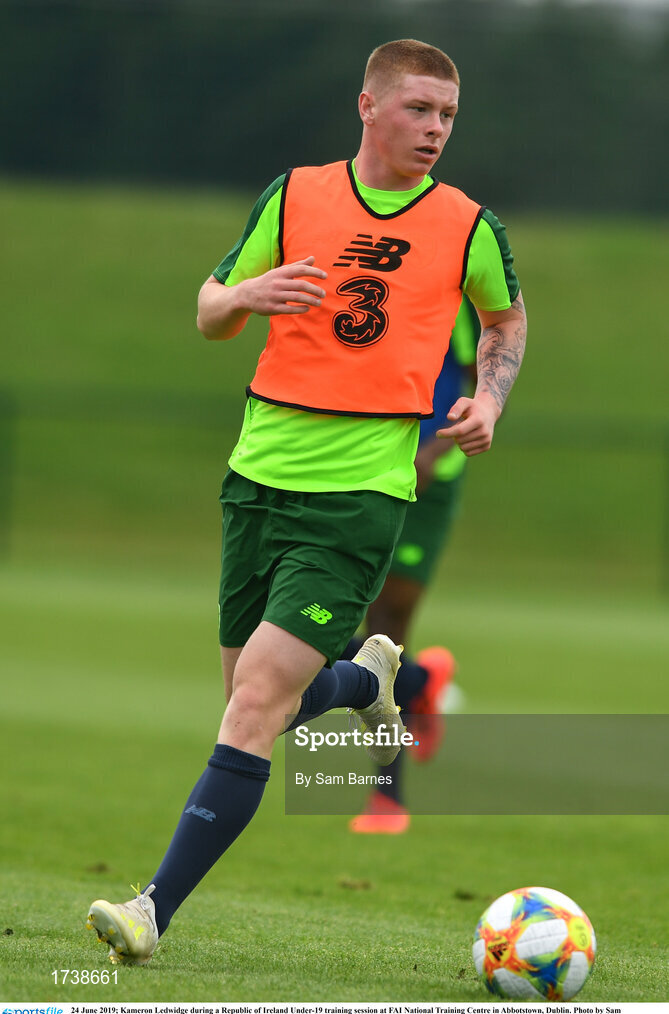 24 June 2019; Kameron Ledwidge during a Republic of Ireland Under-19 training session at FAI National Training Centre in Abbotstown, Dublin. Photo by Sam Barnes/Sportsfile