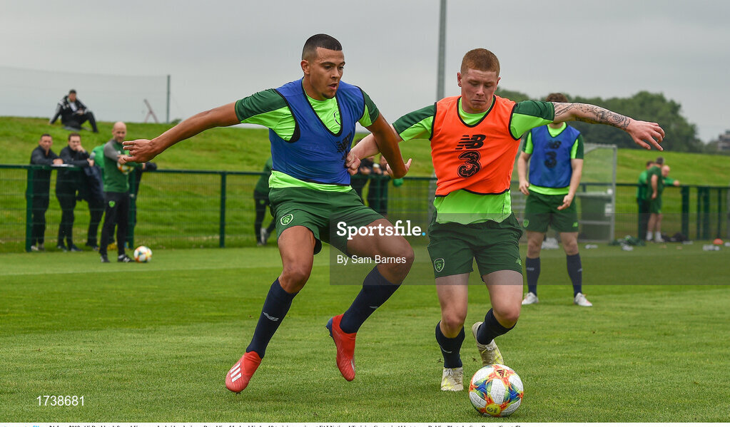 24 June 2019; Ali Reghba, left, and Kameron Ledwidge during a Republic of Ireland Under-19 training session at FAI National Training Centre in Abbotstown, Dublin. Photo by Sam Barnes/Sportsfile