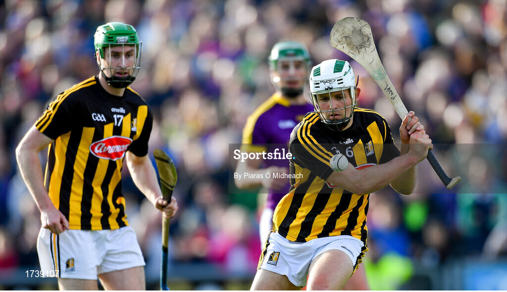 15 June 2019; Pádraig Walsh of Kilkenny clears his lines as team-mate Joey Holden and Conor McDonald of Wexford look on during the Leinster GAA Hurling Senior Championship Round 5 match between Wexford and Kilkenny at Innovate Wexford Park in Wexford. Photo by Piaras Ó Mídheach/Sportsfile
