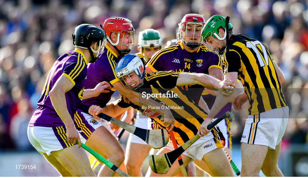15 June 2019; Huw Lawlor of Kilkenny bursts out from a group of Wexford and Kilkenny players during the Leinster GAA Hurling Senior Championship Round 5 match between Wexford and Kilkenny at Innovate Wexford Park in Wexford. Photo by Piaras Ó Mídheach/Sportsfile