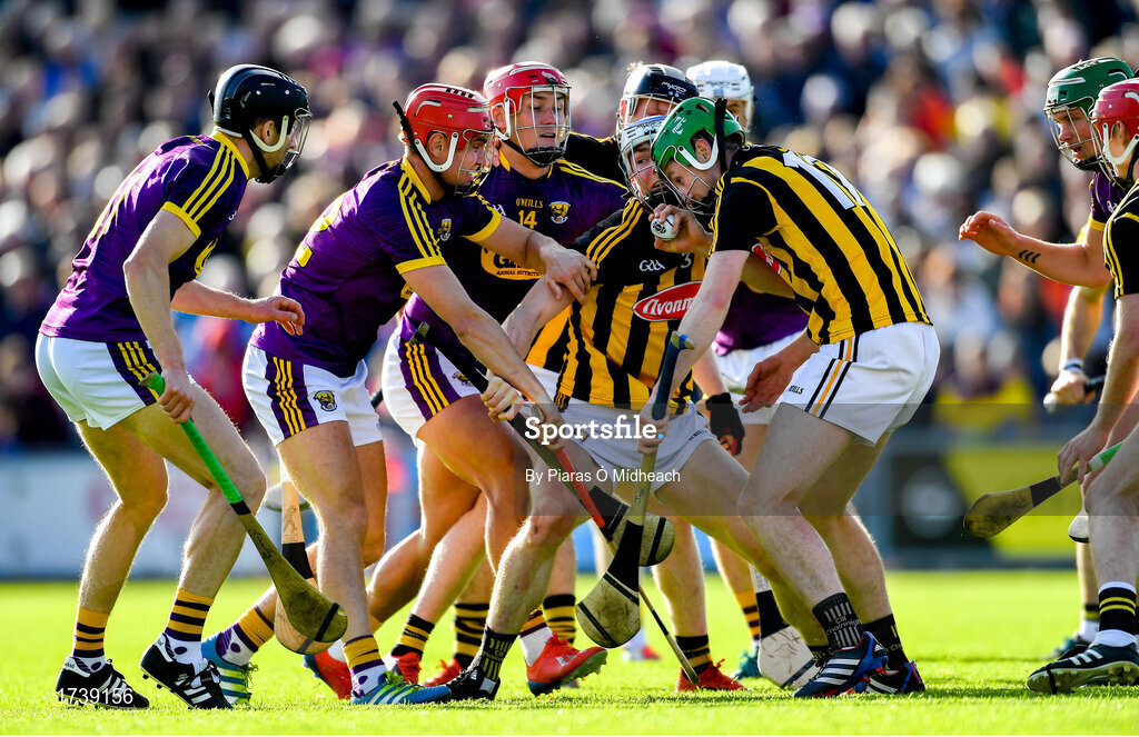 15 June 2019; Huw Lawlor of Kilkenny bursts out from a group of Wexford and Kilkenny players during the Leinster GAA Hurling Senior Championship Round 5 match between Wexford and Kilkenny at Innovate Wexford Park in Wexford. Photo by Piaras Ó Mídheach/Sportsfile