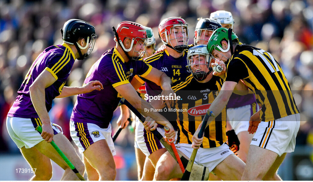 15 June 2019; Huw Lawlor of Kilkenny bursts out from a group of Wexford and Kilkenny players during the Leinster GAA Hurling Senior Championship Round 5 match between Wexford and Kilkenny at Innovate Wexford Park in Wexford. Photo by Piaras Ó Mídheach/Sportsfile