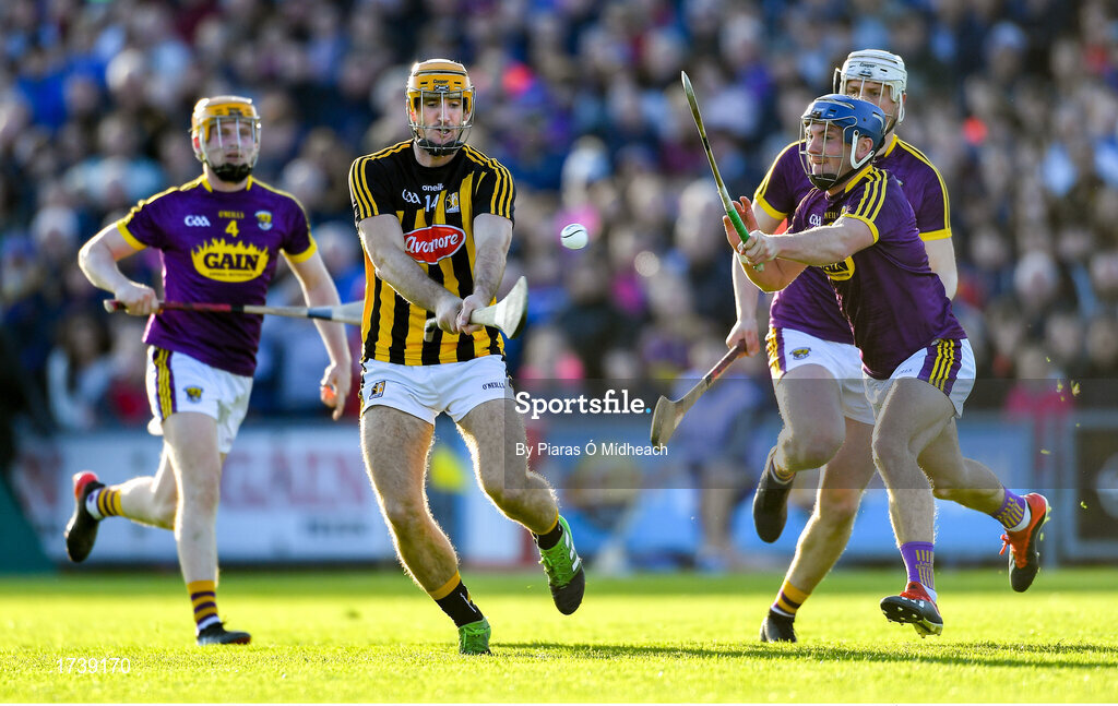 15 June 2019; Colin Fennelly of Kilkenny in action against Wexford players, from left, Simon Donohoe, Liam Ryan, behind, and Kevin Foley during the Leinster GAA Hurling Senior Championship Round 5 match between Wexford and Kilkenny at Innovate Wexford Park in Wexford. Photo by Piaras Ó Mídheach/Sportsfile