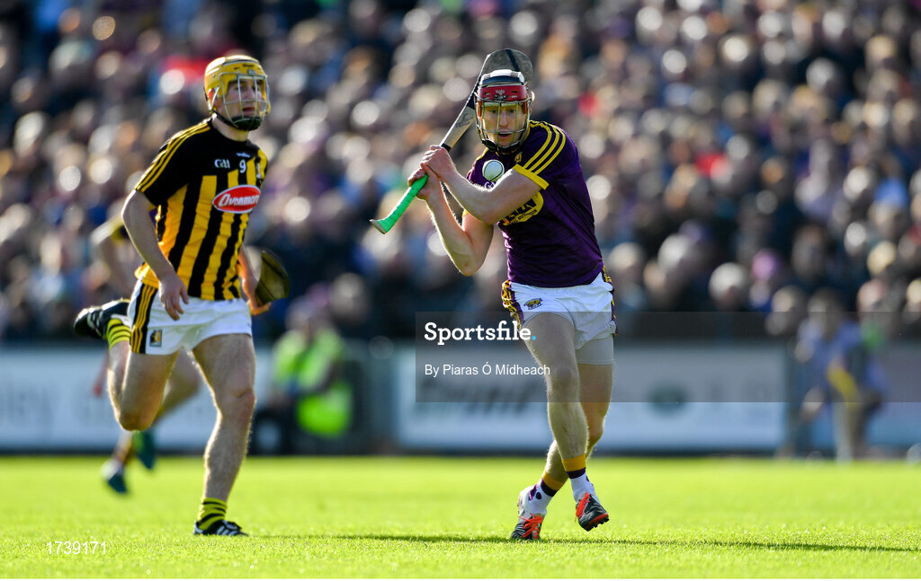 15 June 2019; Diarmuid O'Keeffe of Wexford in action against Richie Leahy of Kilkenny during the Leinster GAA Hurling Senior Championship Round 5 match between Wexford and Kilkenny at Innovate Wexford Park in Wexford. Photo by Piaras Ó Mídheach/Sportsfile