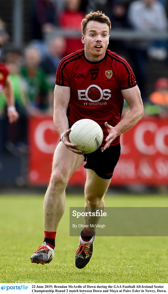 22 June 2019; Brendan McArdle of Down during the GAA Football All-Ireland Senior Championship Round 2 match between Down and Mayo at Pairc Esler in Newry, Down. Photo by Oliver McVeigh/Sportsfile