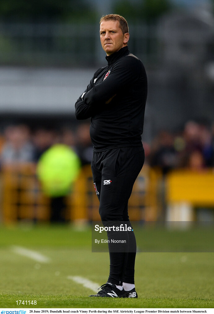 28 June 2019; Dundalk head coach Vinny Perth during the SSE Airtricity League Premier Division match between Shamrock Rovers and Dundalk at Tallaght Stadium in Dublin. Photo by Eóin Noonan/Sportsfile