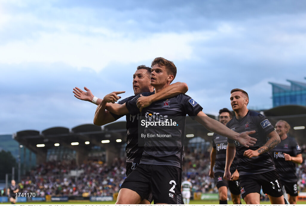 28 June 2019; Seán Gannon of Dundalk celebrates with team-mate Brian Gartland, left, after scoring his side's first goal during the SSE Airtricity League Premier Division match between Shamrock Rovers and Dundalk at Tallaght Stadium in Dublin. Photo by Eóin Noonan/Sportsfile