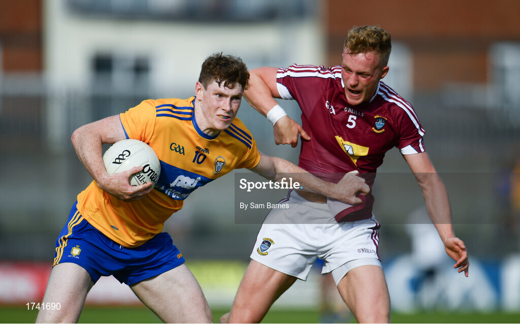 29 June 2019; Sean O'Donoghue of Clare in action against Killian Daly of Westmeath during the GAA Football All-Ireland Senior Championship Round 3 match between Westmeath and Clare at TEG Cusack Park in Mullingar, Westmeath. Photo by Sam Barnes/Sportsfile