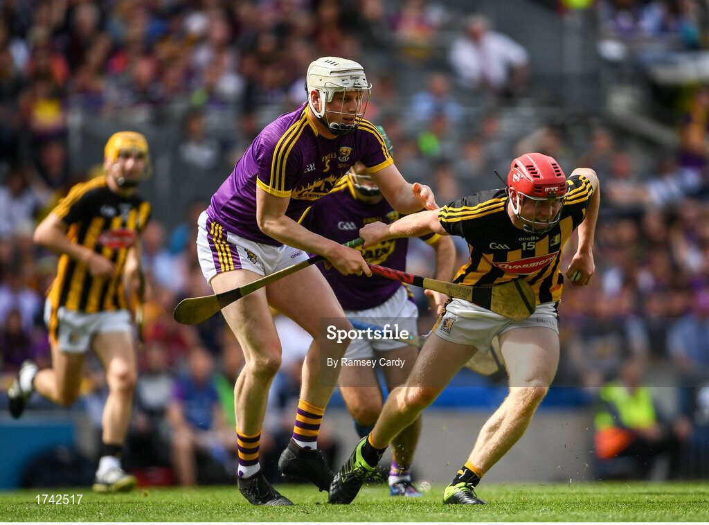 30 June 2019; Liam Ryan of Wexford in action against Adrian Mullen of Kilkenny during the Leinster GAA Hurling Senior Championship Final match between Kilkenny and Wexford at Croke Park in Dublin. Photo by Ramsey Cardy/Sportsfile