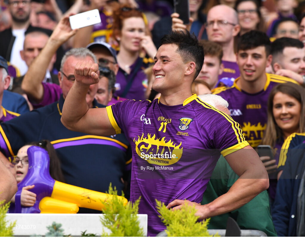 30 June 2019; Joint Wexford Captain Lee Chin before lifting the Bob O'Keefe Cup after the Leinster GAA Hurling Senior Championship Final match between Kilkenny and Wexford at Croke Park in Dublin. Photo by Ray McManus/Sportsfile