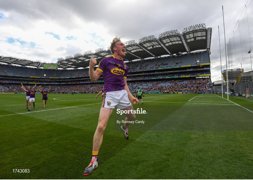30 June 2019; Diarmuid O'Keeffe of Wexford celebrates following the Leinster GAA Hurling Senior Championship Final match between Kilkenny and Wexford at Croke Park in Dublin. Photo by Ramsey Cardy/Sportsfile