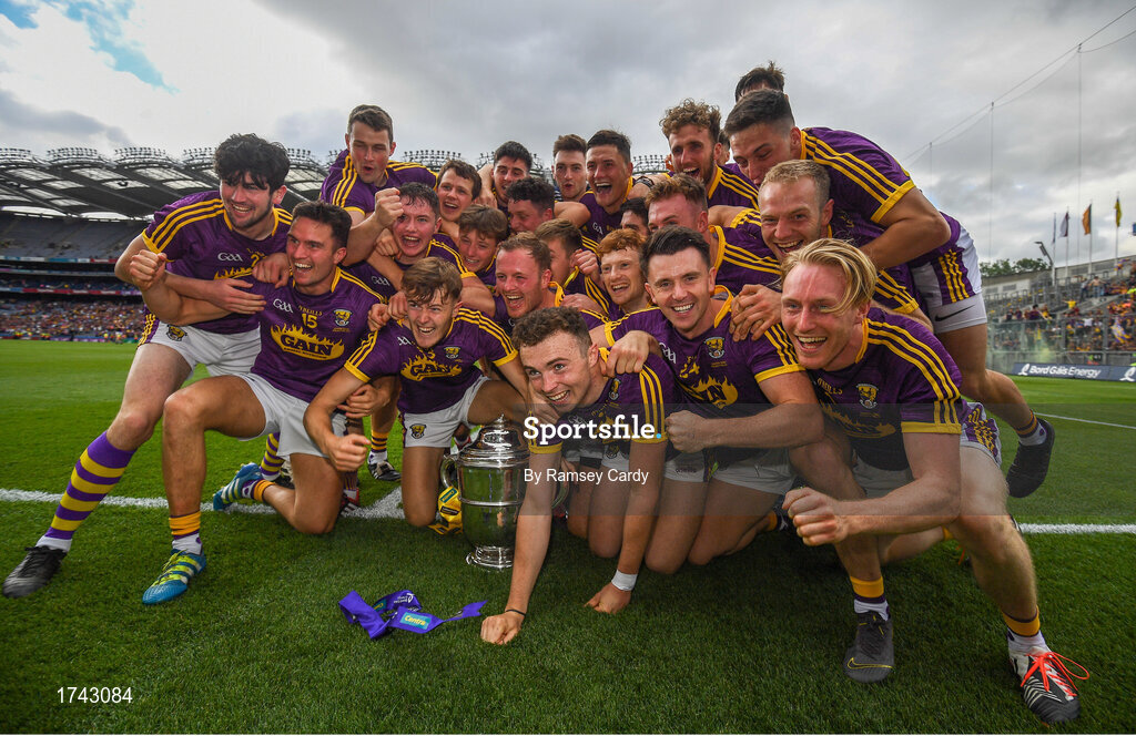 30 June 2019; The Wexford team celebrate following the Leinster GAA Hurling Senior Championship Final match between Kilkenny and Wexford at Croke Park in Dublin. Photo by Ramsey Cardy/Sportsfile