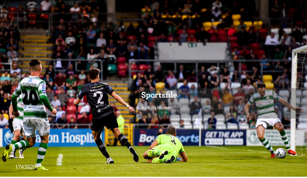 28 June 2019; Joey O'Brien of Shamrock Rovers fails to stop a shot on goal by Seán Gannon of Dundalk during the SSE Airtricity League Premier Division match between Shamrock Rovers and Dundalk at Tallaght Stadium in Dublin. Photo by Eóin Noonan/Sportsfile